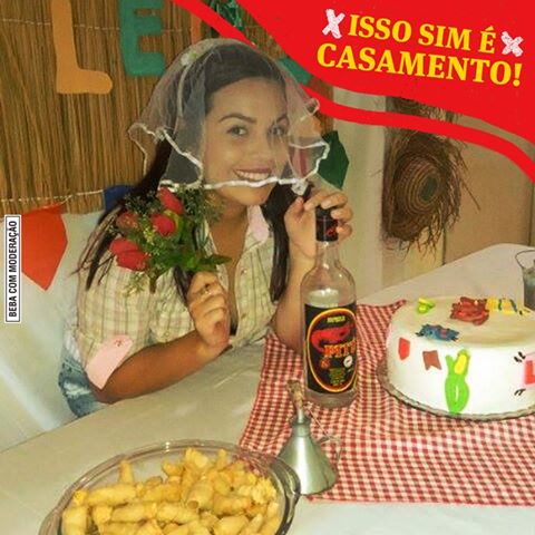 A noiva, Gabriele Barros, já arrumou o par dela, um litrinho da aguardente mais querida do Brasil. Eita, que esse casamento promete ser rochedo demais! =D