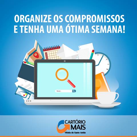 Momento Cartório Mais Publicado em 5 de agosto de 2016 por Arquiles Petrus Tenha uma ótima e proveitosa semana de trabalho! #Trabalho #Negocios #CartorioMais #Organização#Empresa