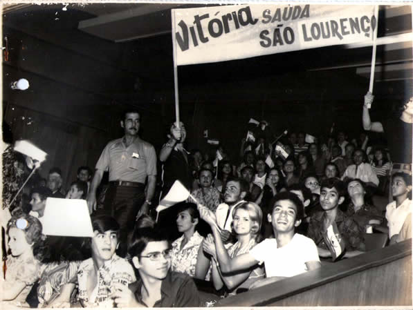 Foto registrada durante o programa Cidade Contra Cidade, Na foto a caravana de nossa cidade é comandada pelo Prefeito Barreto (em pé). Vitória competiu com a de São Lourenço da Mata.