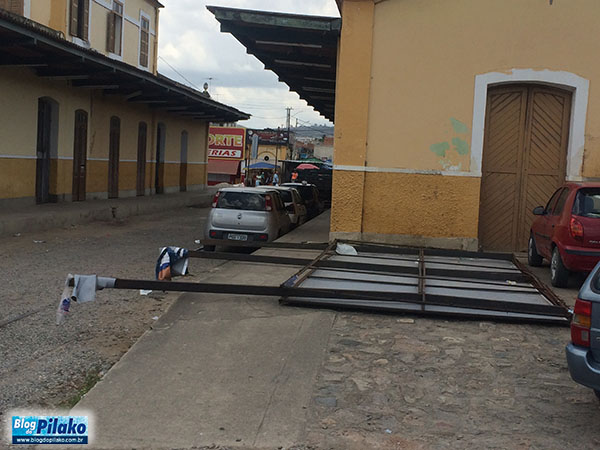 Segundo informações de pessoas que sempre estão no entorno da Praça Leão Coroado, foi na manhã do último domingo (23) que a placa publicitária pertencente a prefeitura municipal da Vitória, fixada próxima ao Colégio 3 de Agosto, foi arrancada pelo vento. Alguns populares retiraram a mesma do meio da rua e a colocaram na calçada da Antiga Estação Ferroviária.