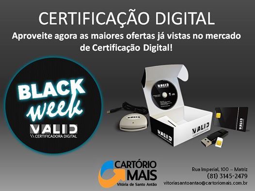 Momento Cartório Mais Publicado em 21 de novembro de 2016 por Arquiles Petrus Você não precisa esperar a sexta feira para encontrar as maiores ofertas que o mercado de certificação digital já viu. Esperamos por sua visita. Venha e garanta o seu Certificado!