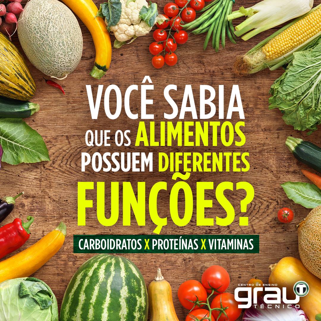 O nosso corpo utiliza os alimentos que ingerimos para gerar energia e também se proteger de possíveis doenças. Mas você sabia que cada tipo de alimento possui uma função específica? Os carboidratos, por exemplo, são energéticos. Já as proteínas possuem uma função plástica, enquanto as vitaminas são excelentes reguladoras. #GrauTecnico