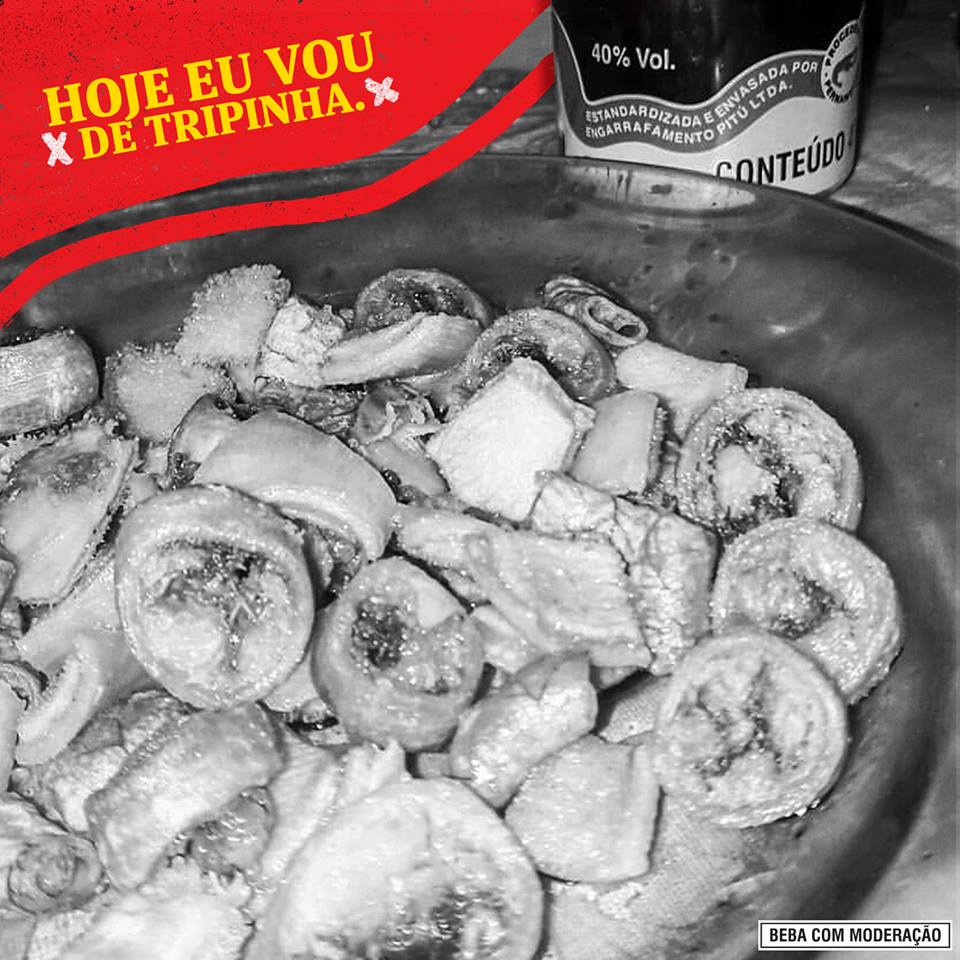 É, meu povo. Se o pedido é tripinha, a cachaça tem que ser Pitú.