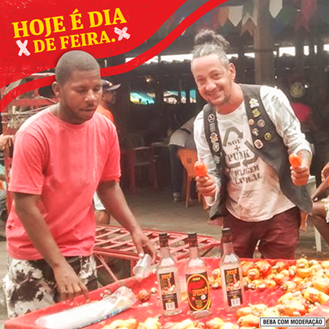 Quem mandou pra gente foi o pituzeiro Marcio Antonio, lá de Feira de Santana, Bahia. Ele disse que o homi nem precisava gritar “Oia o caju”, a turma já via a cachaça de longe e vinha correndo comprar.