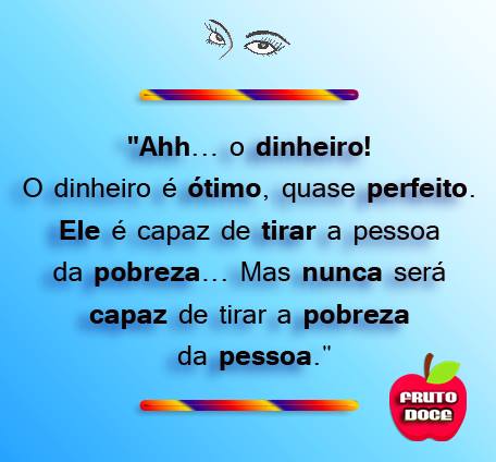 Dinheiro é faca de dois gumes. Há quem use o dinheiro para destruir a própria vida.