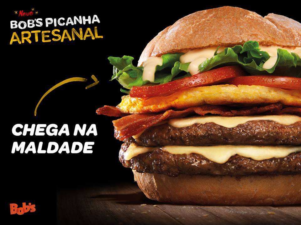 O Picanha Artesanal da Bob’s mata a maior das fomes com ingredientes irresistíveis: pão tipo italiano quentinho, dois hambúrgueres, queijo, bacon, alface, tomate, ovo e maionese. Curtiu? Pode chegar que hoje é sexta-feira dia da maldade!