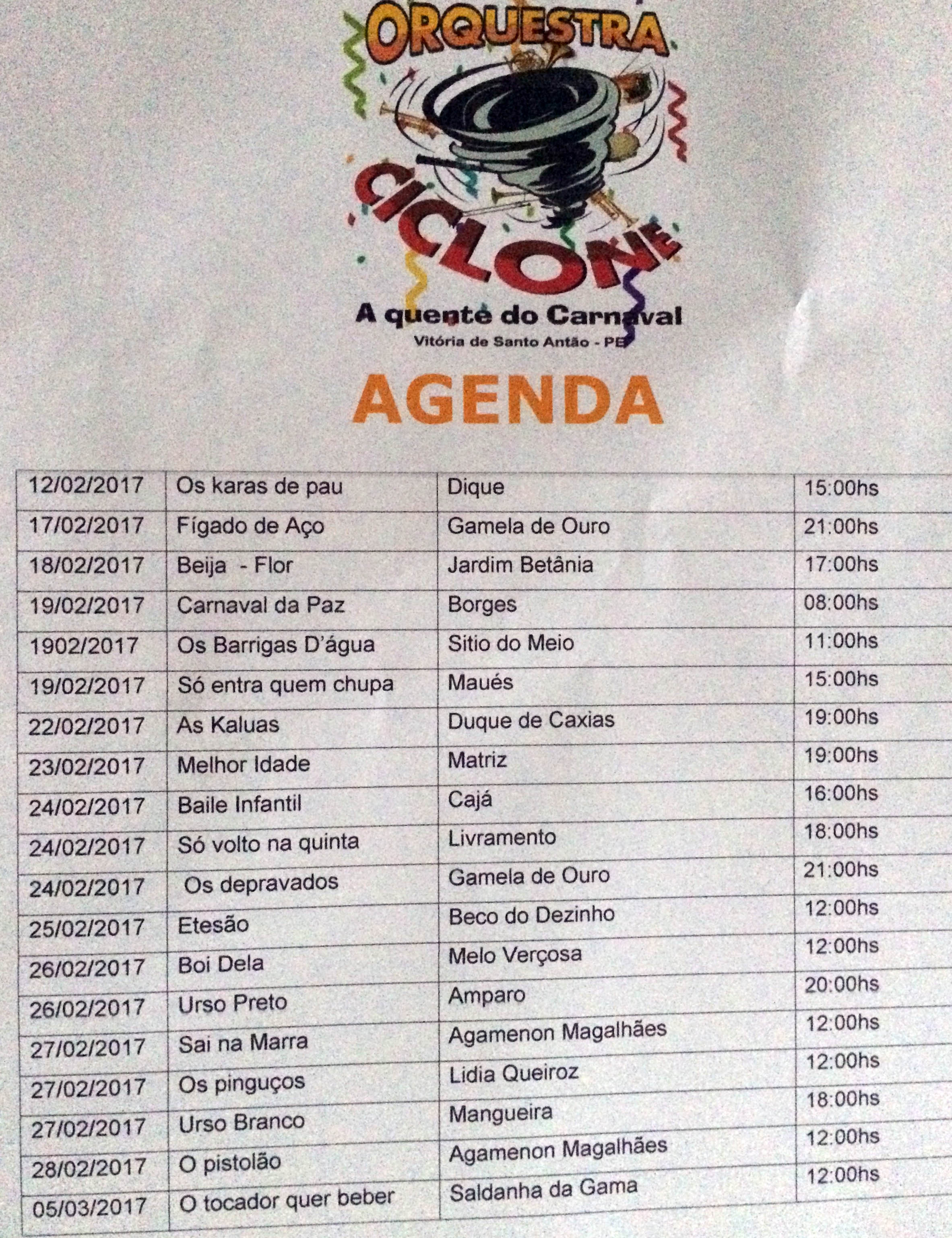 Recebemos na tarde de ontem (16) na nossa redação, em visita de cortesia, o Maestro e comandante da Orquestra Ciclone, Givaldo Barros. Além da programação para o carnaval 2017 – a partir do dia 12 de fevereiro ao dia 05 de março – o amigo Givaldo também me ofertou o novo cd produzido pela Orquestra Ciclone.