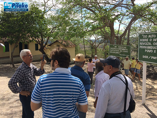 Formada por historiadores, professores, médicos, profissionais liberais e etc, a comitiva teve como primeira parada o nosso Monte das Tabocas. Ainda dentro do ônibus, os visitantes foram recebidos pelo professor Pedro Ferrer que lamentou e, ao mesmo tempo, desculpou-se pelo estado de abandono em que se encontra o nosso Sitio Histórico. Veja o vídeo: