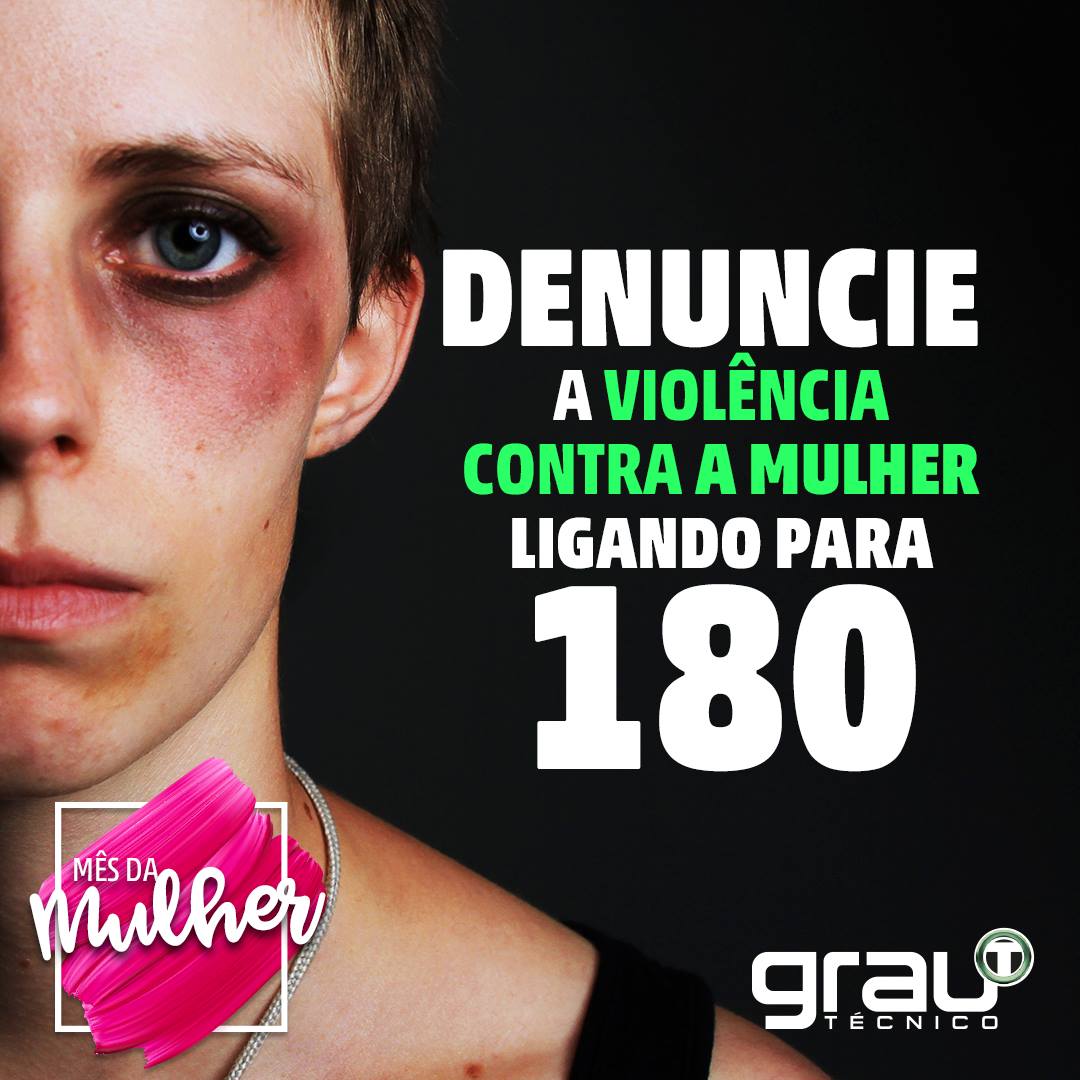 Em briga de marido e mulher se mete a colher sim. Dos 4.762 assassinatos de mulheres registrados em 2013 no Brasil, 50,3% foram cometidos por familiares, sendo que em 33,2% destes casos, o crime foi praticado pelo parceiro ou ex. Não cale perante a violência doméstica. Ligue 180 e denuncie. Essa é a nossa dica de hoje e a sua? #GrauTecnico #MesDaMulher
