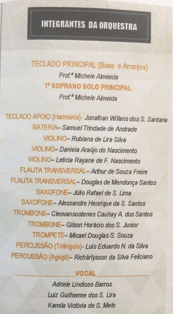 Na noite da sexta (30) o Teatro Silogeu José Aragão foi o palco escolhido pelo IAPCA – Instituição de Assistência Profissional da Criança e Adolescente – para promoção do Primeiro Concerto Musical da Orquestra Popular Multicultural.  Fundado em 17 de dezembro de 1998, na nossa cidade, a entidade  tem como principais metas aconselhar, disciplinar e profissionalizar crianças e adolescentes de escolas públicas. Na qualidade de fundador e coordenador geral desse projeto, encontra-se o Mastro Freire.