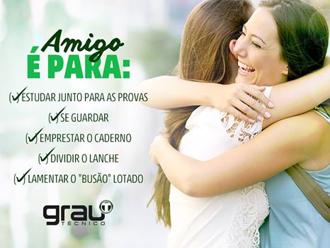 Além da formação profissional, um curso técnico nos traz também amizades para a vida toda. Marque aqui aquele seu amigo que você levará no coração mesmo depois de formado! #GrauTecnico#Amigo