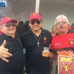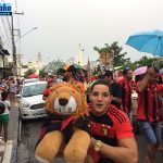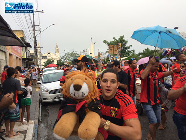 A concentração ocorreu no Pátio da Matriz. Não obstante o frio e o dia chuvoso, aos poucos, o pessoal foi chegando e entrando no clima comemorativo. Como sempre acontece nessas ocasiões, apareceram alguns torcedores espirituosos e empolgados, acaba trazendo para a festa algumas curiosidades e bonecos. Apesar de “sofredor” alvirrubro, marquei presença para registrar a brincadeira e registrar no nosso jornal eletrônico, intitulado Blog do Pilako.