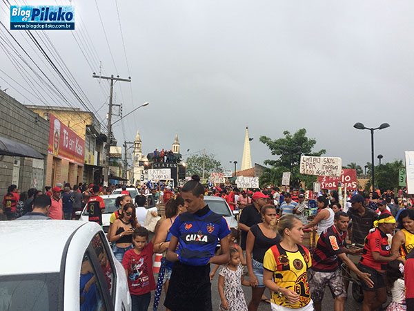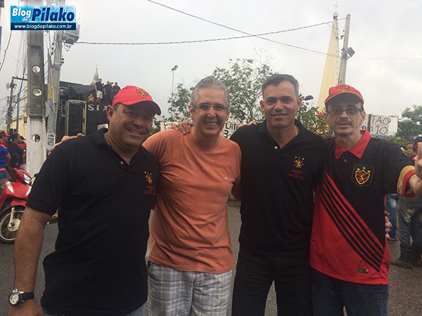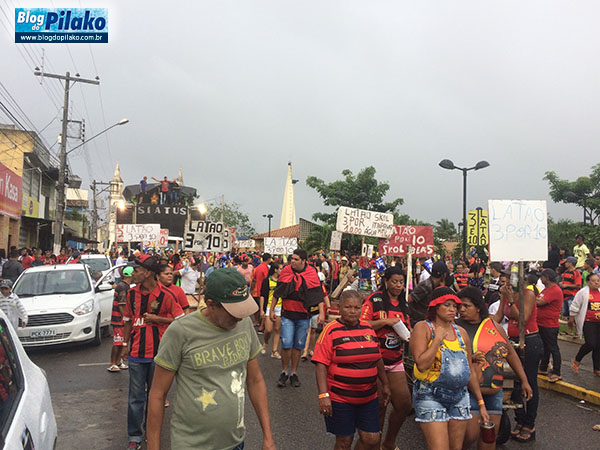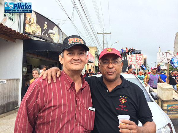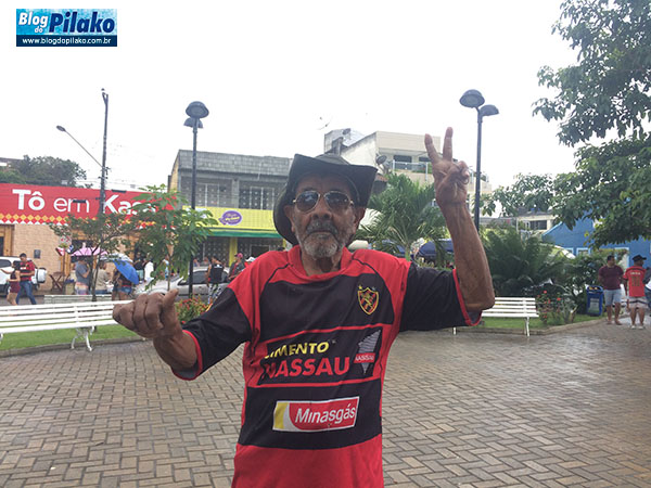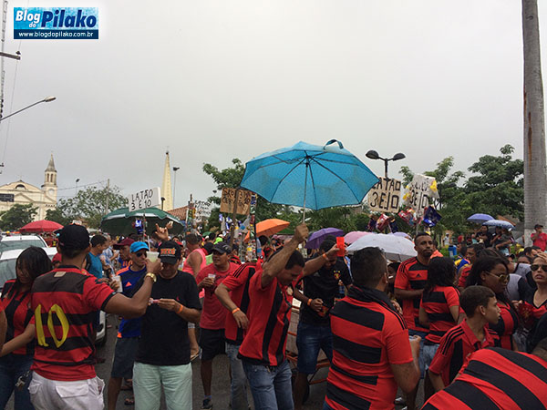 A concentração ocorreu no Pátio da Matriz. Não obstante o frio e o dia chuvoso, aos poucos, o pessoal foi chegando e entrando no clima comemorativo. Como sempre acontece nessas ocasiões, apareceram alguns torcedores espirituosos e empolgados, acaba trazendo para a festa algumas curiosidades e bonecos. Apesar de “sofredor” alvirrubro, marquei presença para registrar a brincadeira e registrar no nosso jornal eletrônico, intitulado Blog do Pilako.