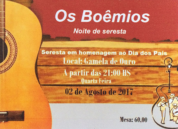 No próximo dia dois de agosto, véspera de feriado municipal, acontecerá o show dos artistas vitorienses, Neide & Pepeu. O evento dançante acontecerá no Restaurante Gamela de Ouro. Com um repertório herdado do pai – Seu Bí do Violão – Neide interpreta o que melhor existe no ritmo da seresta. Já comprei a “mesa” e marcarei presença, para ouvi-los, prestigia-los e apreciar uma boa noitada.