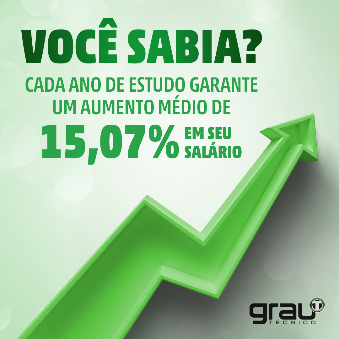 Uma pesquisa intitulada “Você no Mercado de Trabalho”, da Fundação Getúlio Vargas, apontou que cada ano de estudo garante um aumento médio de 15,07% no salário do trabalhador. Para quem deseja mudar de área, cada um destes anos a mais representa um aumento de 3,38% nas chances de ocupar uma nova função.#GrauTecnico