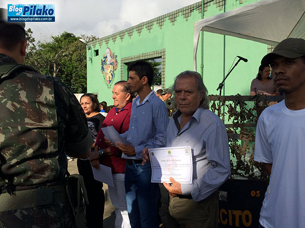 Por ocasião do evento, atiradores foram condecorados pelo bom desempenho no concurso de tiro ao alvo. O instrutor chefe do nosso Tiro de Guerra, Subtenente Sidiclei, em ato de reconhecimento, pelos relevantes serviços prestados ao Tiro de Guerra, diplomou alguns membros da sociedade local, dentre eles destacamos o presidente do nosso Instituto Histórico e Geográfico da Vitória, professor Pedro Ferrer e o Cabo da Polícia Militar Jailton, ex atirador.