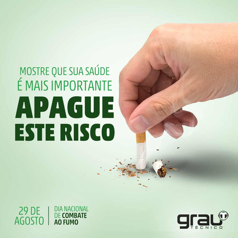 No Brasil, o tabagismo é responsável por mais de 120.000 mortes ao ano. O cigarro pode causar doenças como hipertensão arterial, infarto do miocárdio, aterosclerose, bronquite crônica, angina pectoris, tromboangeíte obliterada, enfisema pulmonar, cânceres de pulmão, boca, laringe, esôfago, estômago, pâncreas, bexiga, rim, faringe, colo de útero, mama, reto, intestino e próstata. diabetes, otite, amigdalite, osteoporose, acidente vascular cerebral, aneurisma da aorta, estomatite, aborto, linfoma, catarata, periodontite, tuberculose, deslocamento precoce da placenta e sinusite, entre algumas outras. Diga não ao tabagismo. Diga sim a sua saúde. #GrauTecnico #SaúdeÉoqueInteressa #DigaNãoAoFumo #DiaNacionaldoCombateaoFum