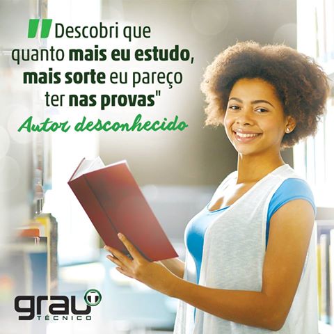 Jogue a preguiça para o lado, pegue os livros e revise a matéria com afinco. Para se sair bem nas provas, não existe milagre, o que existe é dedicação e amor pela futura profissão. E aí, já estudou hoje? #GrauTecnico