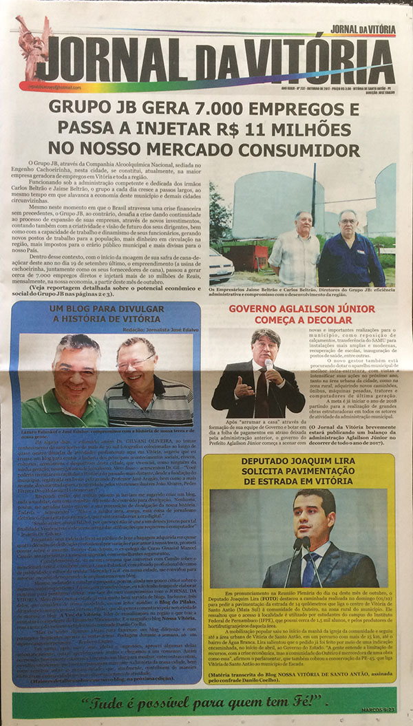 Já está circulando a nova edição do Jornal da Vitória. Publicado em 20 de outubro de 2017 por Arquiles Petrus