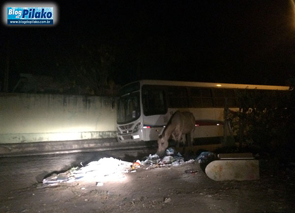 Na noite de ontem (08) nossas lentes registraram, numa rua próxima a FAINTVISA, bairro do Cajá, um cavalo perambulando pelas vias públicas e promovendo a maior sujeira e imundice. Animais de grande porte, circulando livremente pelas ruas da cidade configura-se num grave problema de Saúde Pública.