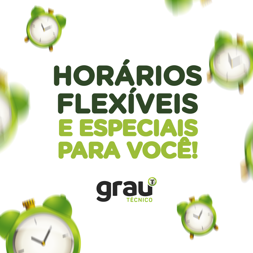 Com aulas três vezes por semana em média, os cursos do Grau Técnico são ofertados nos três turnos: manhã, tarde e noite. Você pode adequar a rotina de estudos sem atrapalhar no dia a dia! Que tal começar 2018 com uma nova profissão?#GrauTécnico #PenseNoFuturo