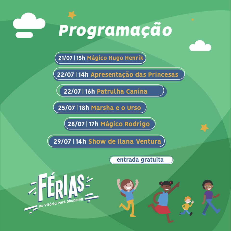Momento Vitória Park Shopping. Publicado em 20 de julho de 2018 por Cristiano Pilako O mês de férias chegou por aqui no #VPS! 🎯 🏃 💃 Vem aproveitar a melhor programação aqui em nossa praça de eventos 1! #Gratuito#Ferias´.