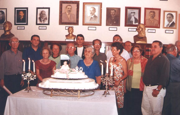 A foto foi registrada durante o aniversário de 80 anos da Dona Eunice Xavier, presidente de honra do Instituto Histórico e Geográfico da Vitória, ocorrido em setembro de 2003. Da Esquerda para a direita: João Alvares, Fenando Moura, Lúcia Beltrão, Severina Moura, Zito Mariano, Jones Pinheiro, Eunice Xavier, Jorges Esteves, Valdinete Moura, Manoel de Holanda Neto, Hélio Campos, Diva Holanda e Carlos Freire.