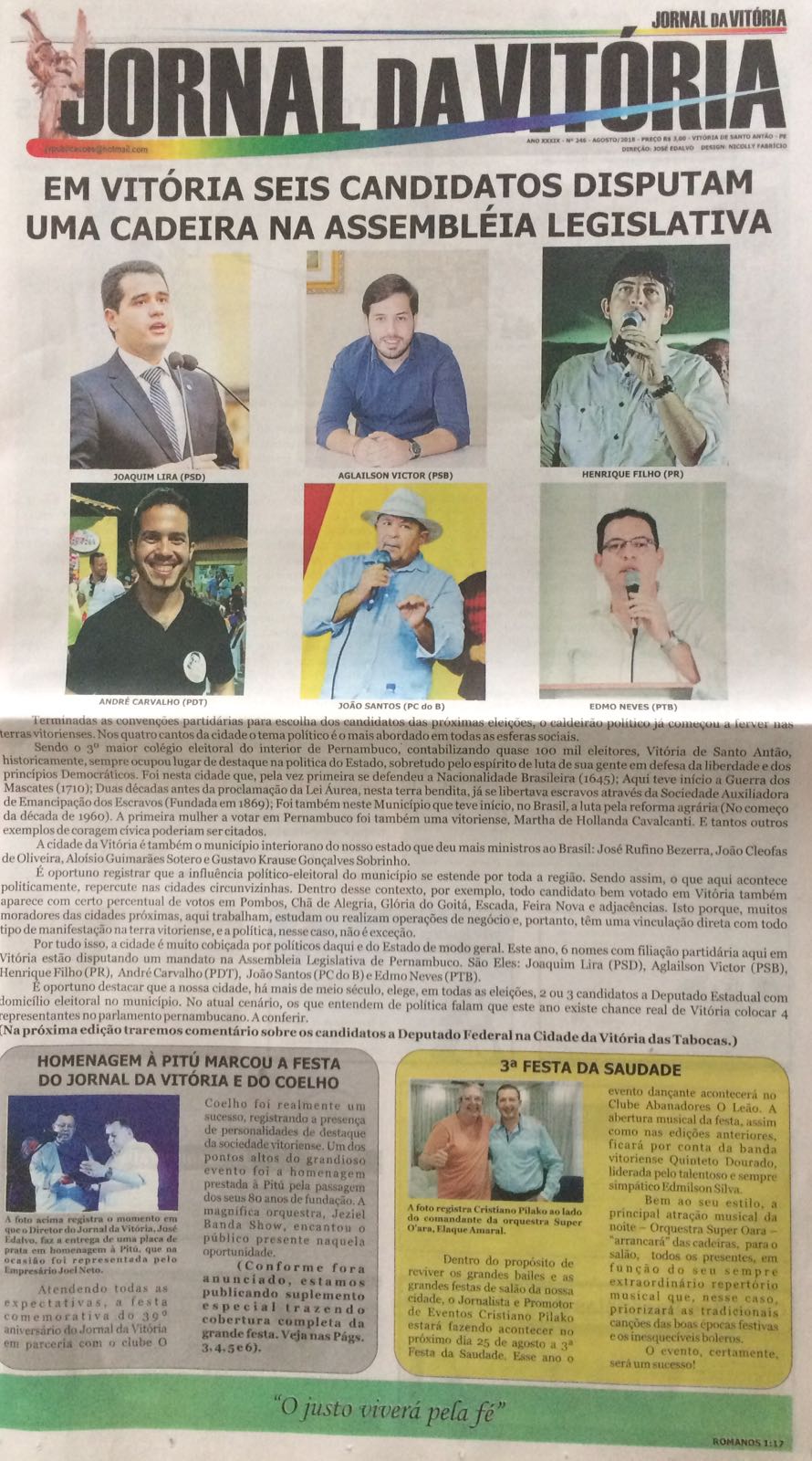 Já circulando a nova edição do Jornal da Vitória. Publicado em 17 de agosto de 2018 por Cristiano Pilako