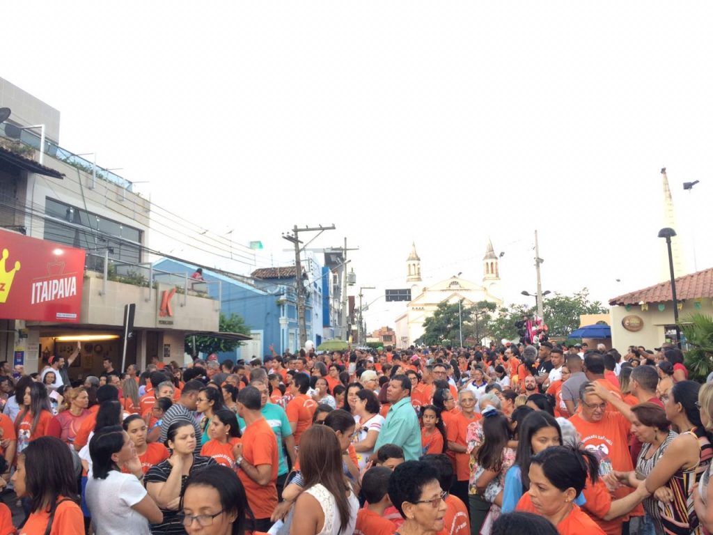 Durante a tarde/noite do domingo (16) aconteceu a 8ª Caminhada da Família. O evento religioso, que teve como tema “Sal da Terra e Luz do Mundo” foi promoção do Vicariato Vitória. Vestidos com camisas padronizadas e animados por músicas e hinos católicos, o grupo desfilou pelas principais ruas da cidade. Por ocasião da passagem pelo Pátio da Matriz, fizemos alguns registros: