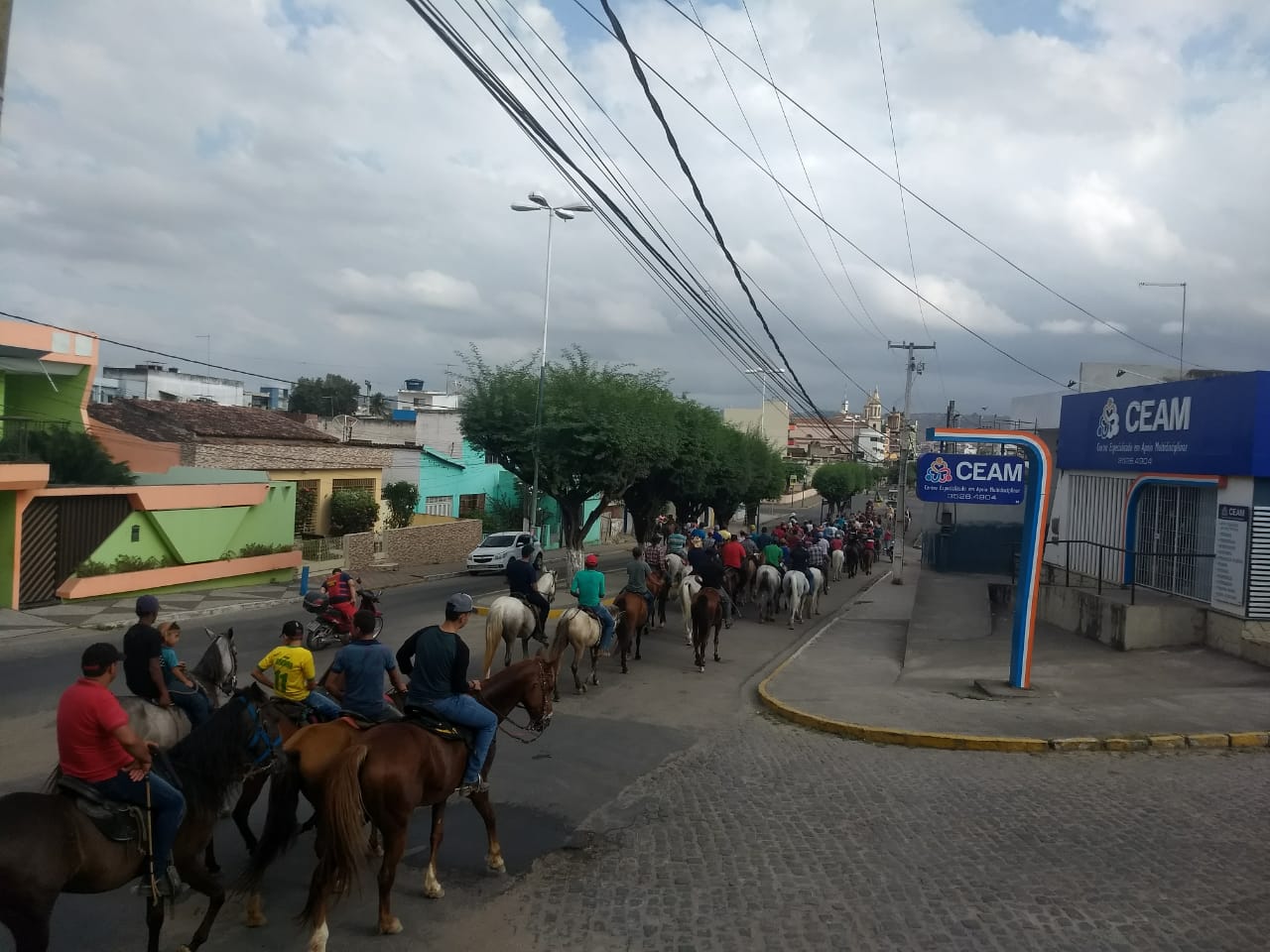Registramos na manhã do domingo (14), pela Avenida Silva Jardim (Matriz) a passagem da cavalgada que seguiu na direção do Engenho Bento Velho para abrilhantar a 4º edição da Missa do Vaqueiro,  promovida pela Igreja Matriz, liderada pelo Monsenhor Maurício Diniz.