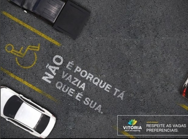 Nem tudo tá desocupado tá disponível, concorda? Com as vagas preferenciais é exatamente assim. Elas existem por uma razão e para pessoas que precisam muito mais que você. Respeite as vagas preferenciais em nosso estacionamento. Assim, nossa vida fica muito melhor.
