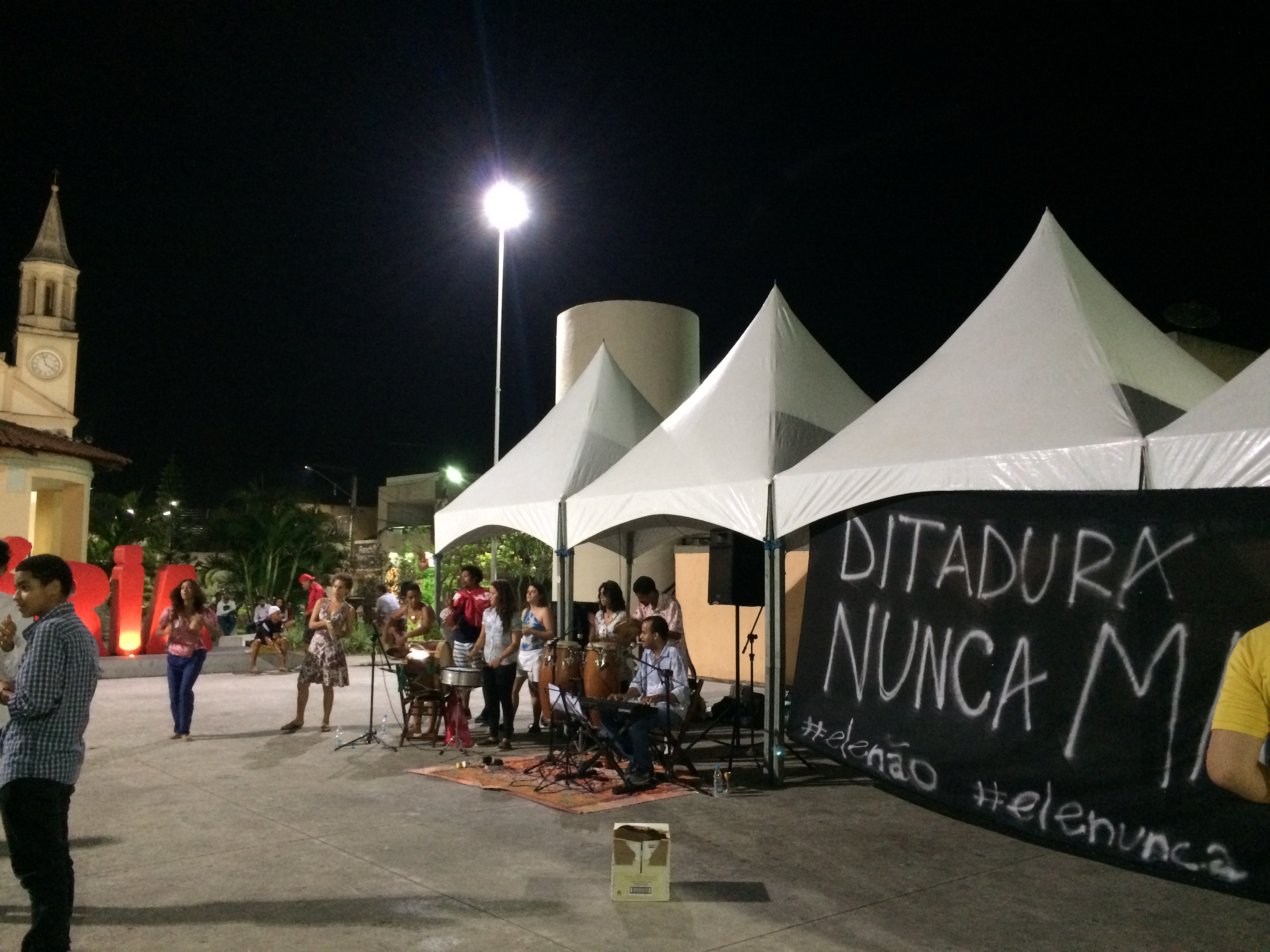 Entre os atos ocorridos por aqui registramos, na noite da sexta (19), na Praça Dom Luiz de Brito, um movimento promovido pelos artistas locais exaltando, por assim dizer, o regime democrático. Na ocasião, gravamos um vídeo com o talentoso Pablo Dantas. Veja o vídeo.