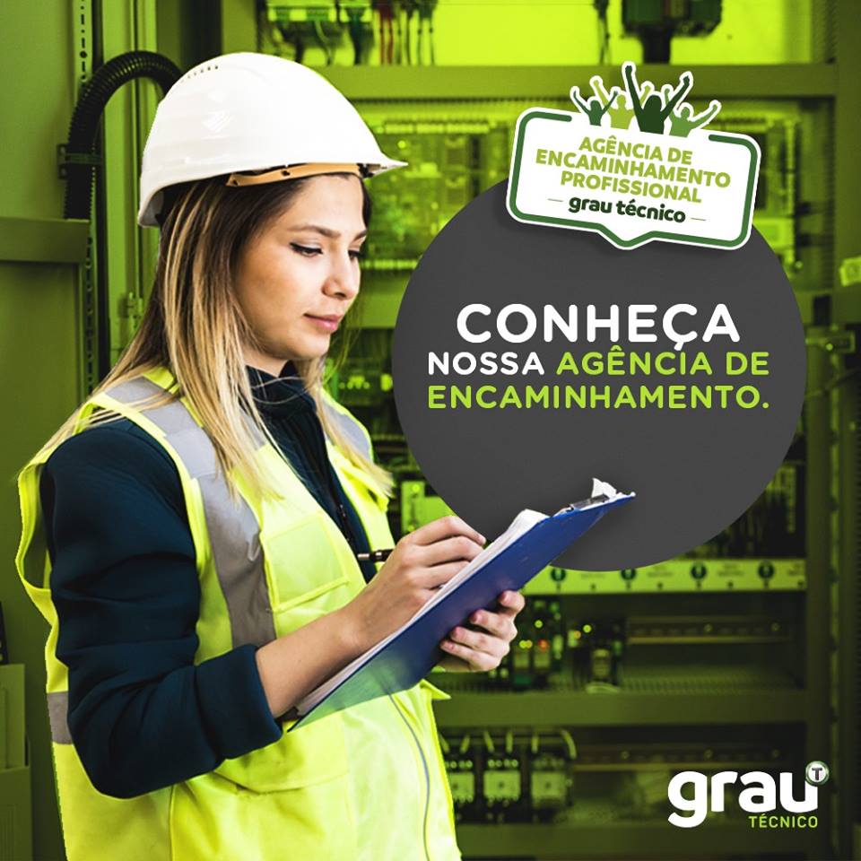 Momento Grau Técnico Vitória. Publicado em 24 de outubro de 2018 por Cristiano Pilako Se você ainda não é aluno do Grau Técnico vamos te dar mais um motivo para ser: nossa Agência de Encaminhamento é um de nossos diferenciais. Nela os alunos se cadastram para vagas que são solicitadas diretamente ao Grau.