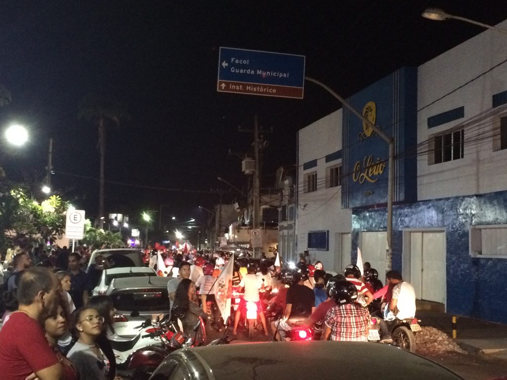 Na noite da sexta (26) aconteceu uma grande movimentação – no formato carreata – nas ruas centrais da cidade, promovido pelos apoiadores da candidatura do presidenciável Fernando Haddad. Registramos a passagem do grupo pelo Pátio da Matriz. Veja o vídeo.