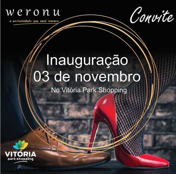 Dia 3 de novembro! Você não pode perder a inauguração da loja #Weronuaqui no Vitória Park Shopping. Você vai ter mais uma opção em nosso mall! A loja contará com: calçados, acessórios e bolsas exclusivas!