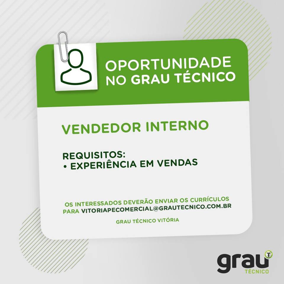 Momento Grau Técnico Vitória. Publicado em 12 de novembro de 2018 por Cristiano Pilako Quer trabalhar conosco e fazer parte da melhor equipe? Envie agora o seu currículo para vitoriapecomercial@grautecnico.com.br.