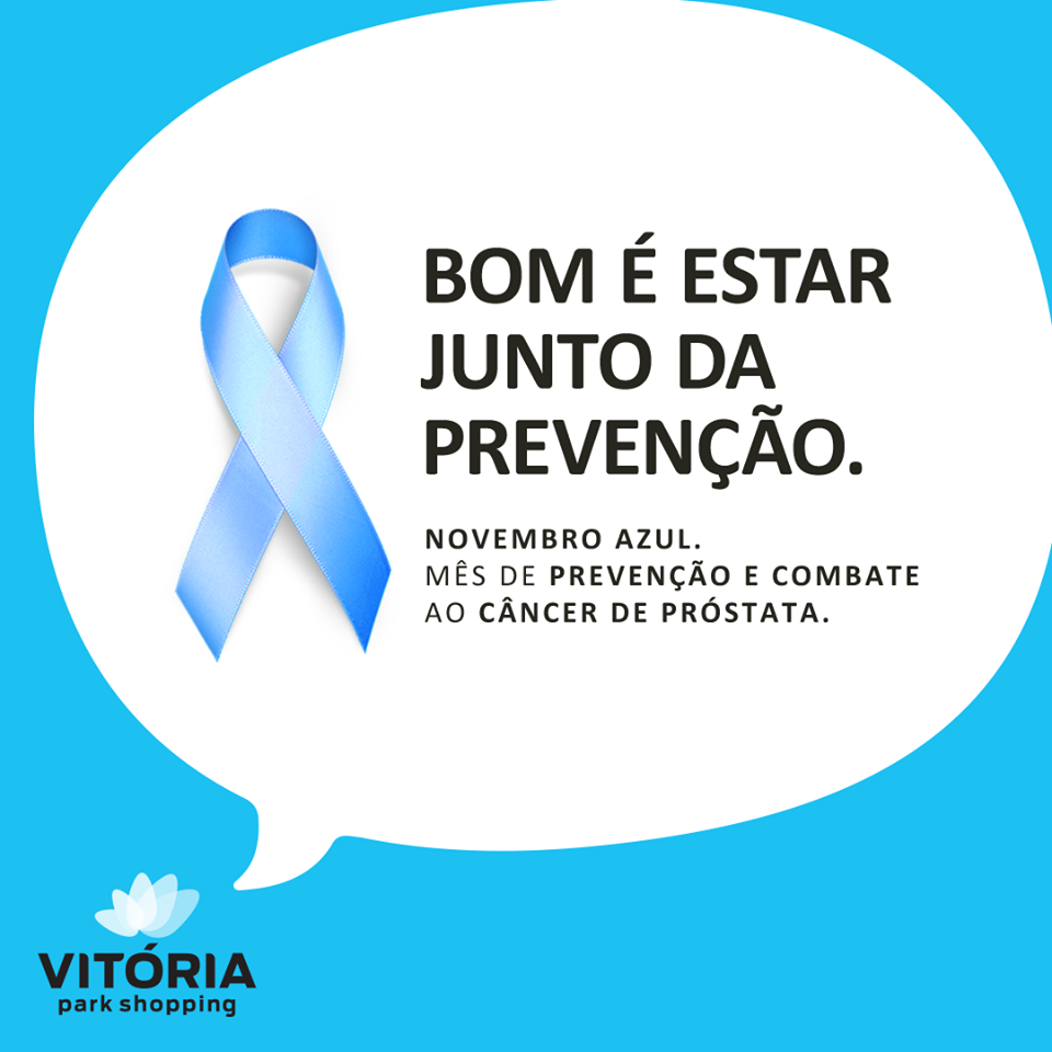 A saúde masculina também merece cuidado. O Vitória Park Shopping apoia a iniciativa do Novembro Azul, conscientizando sobre a importância da prevenção e diagnóstico do câncer de próstata. Só com consultas regulares ao médico e exames em dia podemos combater a doença e salvar muitas vidas. Previna-se!