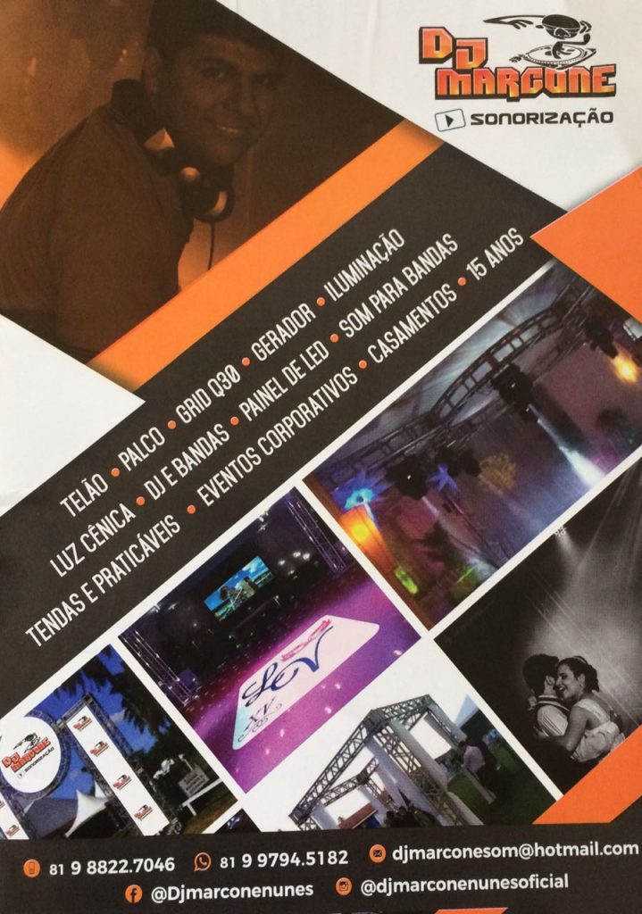 Com quase duas décadas de estrada – atuando em Vitória e toda Região – a empresa antonense do ramo de eventos, Dj Marcone Sonorização, continua avançando na sua missão, que é promover espetáculos para os mais variados públicos com a segurança necessária para os participantes e a total eficiência e pontualidade para os que lhe contrata.