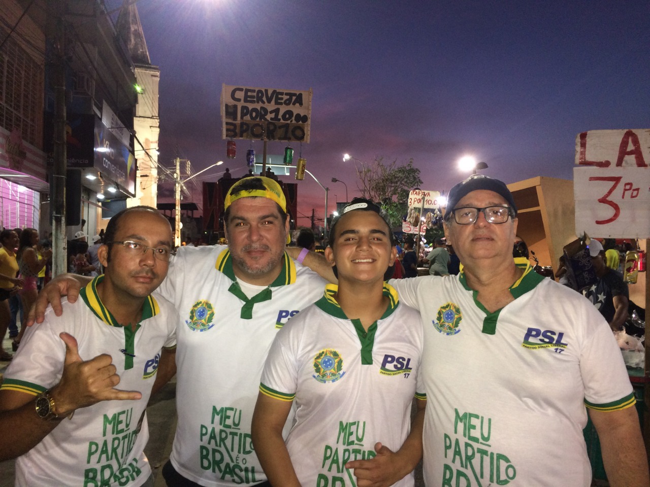Nossas lentes registraram o “movimento” ao passar pelo Pátio da Matriz. Exibindo camisas com a sigla partidária na qual o capitão reformado ascendeu ao Poder Central do Brasil, PSL (17), o grupo, formado por diversas pessoas – já conhecidas e novas lideranças – está animado com o pleito municipal que se aproxima. Com relação ao crescimento político desse movimento no nosso município só o tempo nos dará a resposta. Evidentemente que nada cai do céu na rapidez que almejamos, mas a própria vitória de Bolsonaro nas urnas é uma prova viva que tudo poderá acontecer, ou seja: em política, nada mais será como antes…..