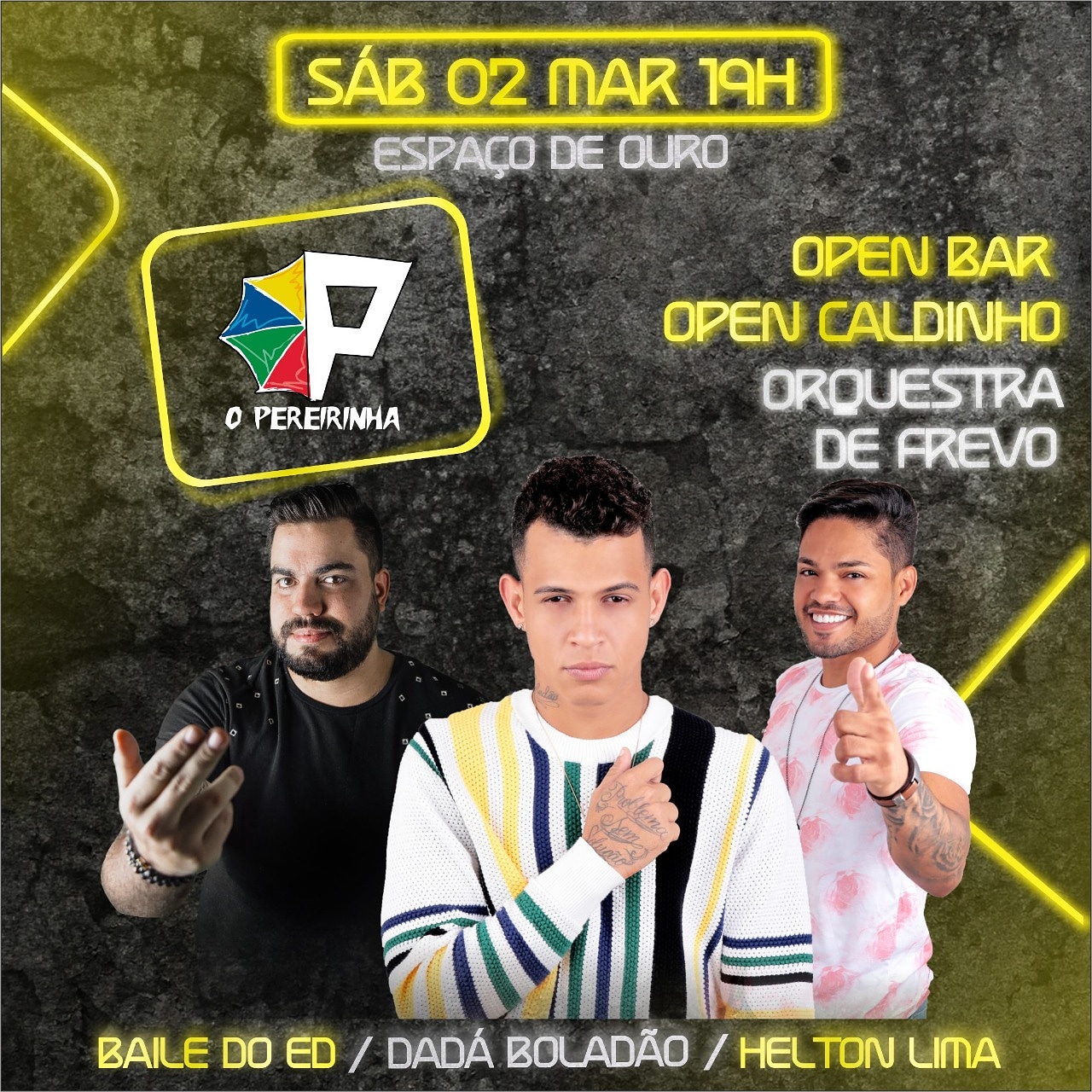 Esse ano – confirmou a diretoria – contará com três atrações na concentração. Terá também o Open Bar, Open Caldinho e o Open Animação. No seu desfile, uma orquestra de frevo, para relembrar o velho “professor Lima”. Tudo isso acontecerá no dia 02 de março. Ingressos com a diretoria ou com os vendedores autorizados.