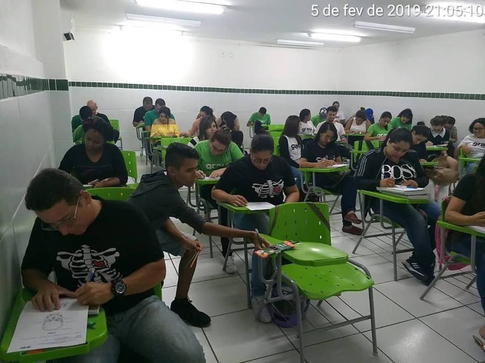 Momento Grau Técnico Vitória. Publicado em 15 de fevereiro de 2019 por Cristiano Pilako Rafiologia – Aula prática: Ossos da cabeça com a turma RAD8. Observação dos ossos em crânios humanos + reconhecimento e pintura em atividade.