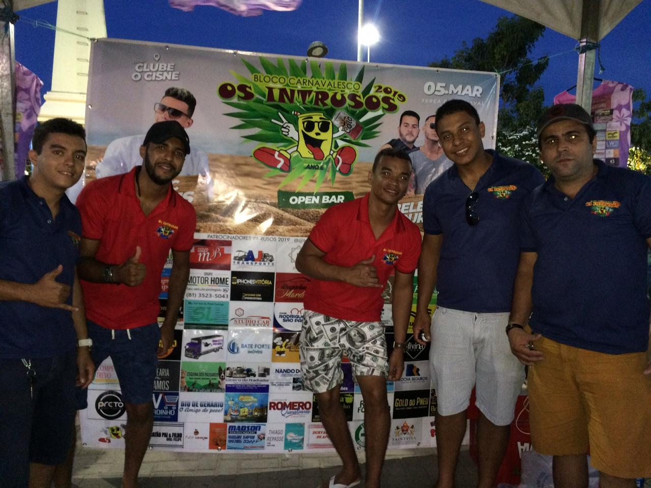 Comandado por um grupo de jovens universitários, desde sempre, “Os Intrusos” só fez crescer. Hoje, no carnaval 2019, já na sua 6ª apresentação, o grupo ganhou espaço e admiração dos foliões da cidade da Vitória e, por mais um ano, estão preparando uma festa bonita para acontecer na terça de carnaval – 05 de fevereiro.