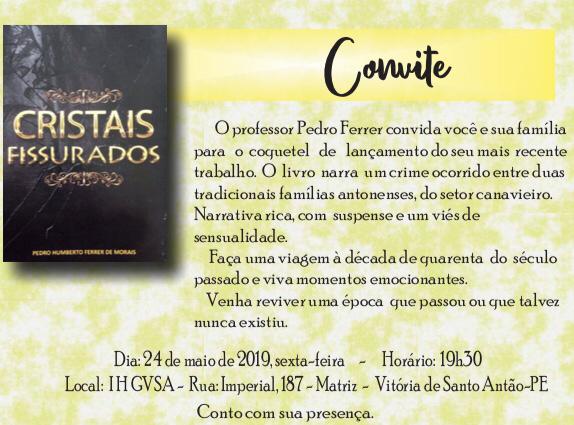 Lançamento do livro do professor Pedro Ferrer acontece na próxima sexta (24). Publicado em 22 de maio de 2019 por Cristiano Pilako