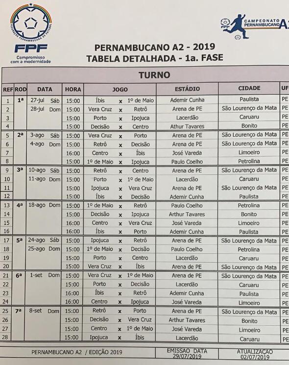 Campeonato Pernambucano A2 – Jogos do Vera Cruz – Arena Publicado em 5 de julho de 2019 por Cristiano Pilako