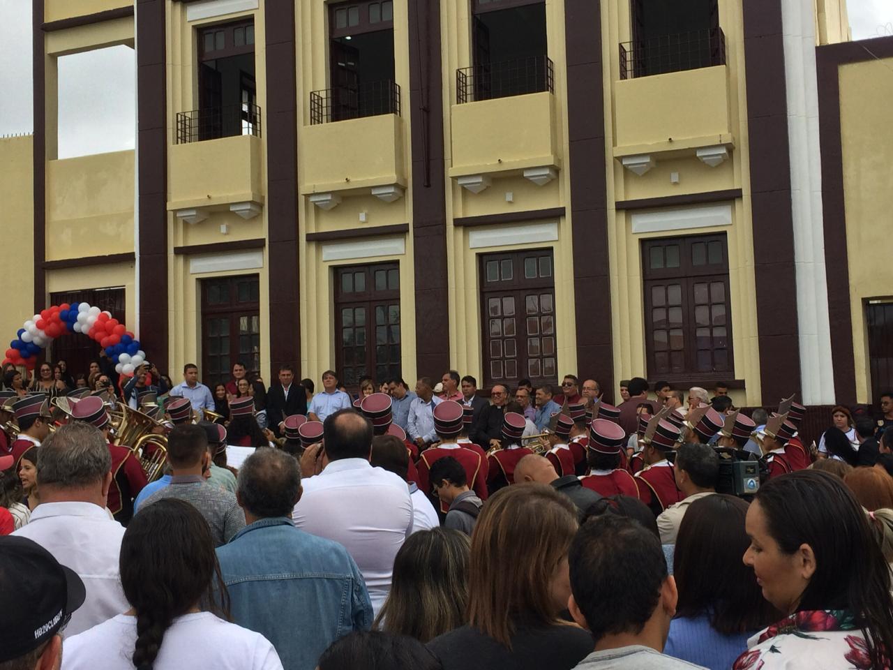 Após o corte da fita, o evento continuou na quadra coberta. Entre outros, religiosos se reversaram ao microfone no sentido de celebrar o momento e pedir proteção ao Deus todo poderoso. A reconhecida e campeã banda do colégio traduziu em som o simbolismo da festa.