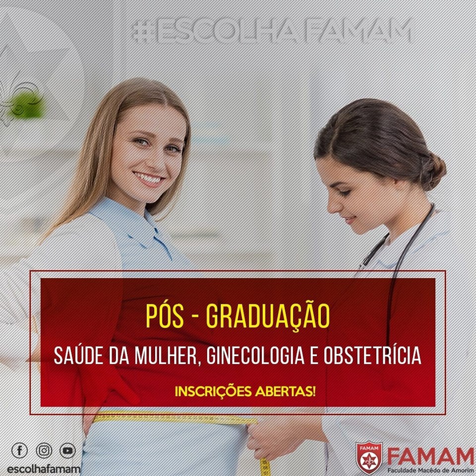 A pós-graduação em Saúde da Mulher, Ginecologia e Obstetrícia tem como objetivo formar profissionais qualificados, aptos a atuar em equipe na assistência à mulher, no ciclo gravídico, puerperal e neonatal. Fale conosco: 🖥www.escolhafamam.com.br 81 3523.1559/:98811.1559