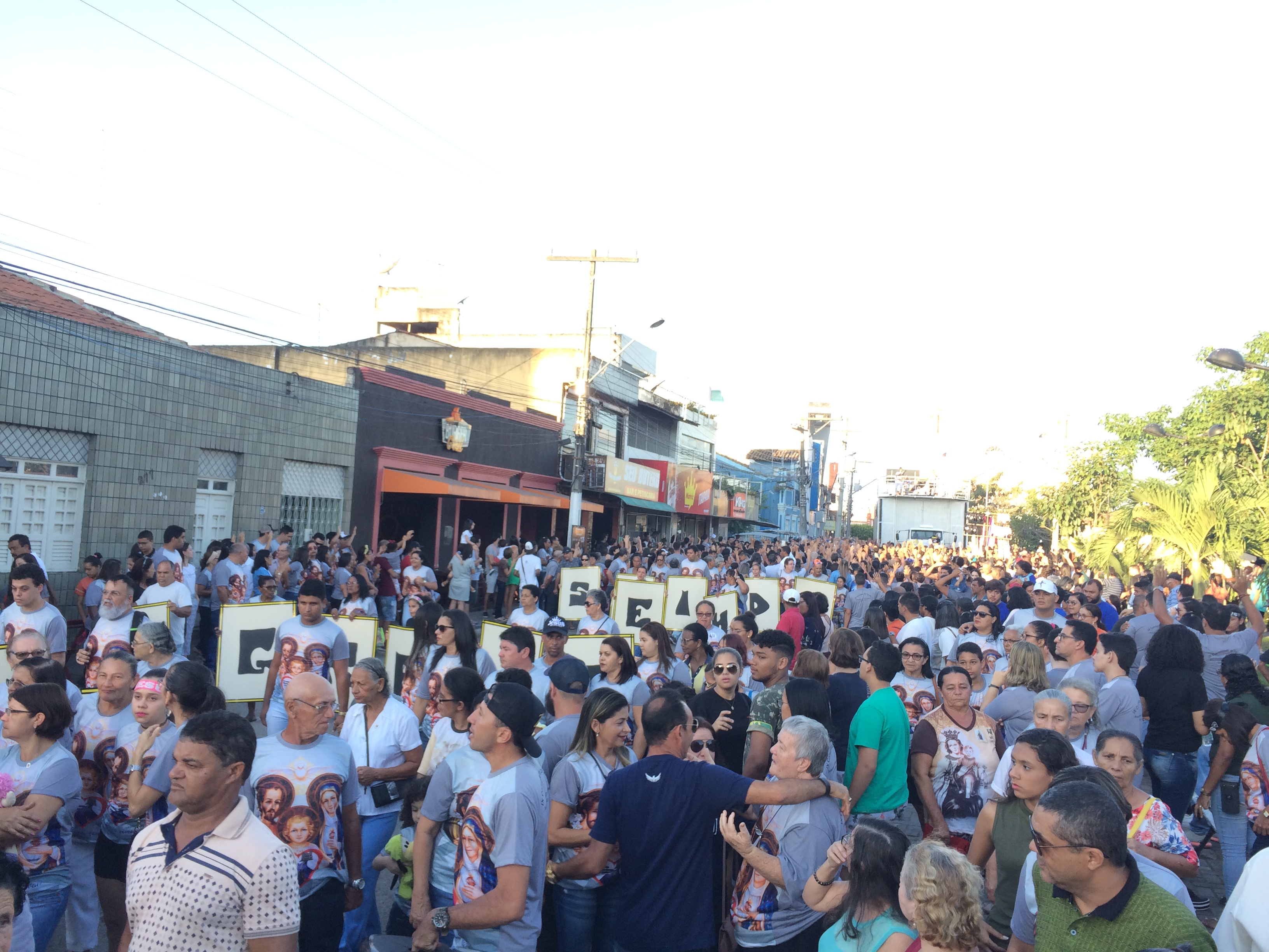 Os católicos vitorienses deram, na tarde do domingo (15), uma forte demonstração de mobilização. A 9ª “Caminhada da Família” superou todas as expectativas de público, segundo os comentários dos participantes. “Puxada” pela Banda “São Francisco” (Olinda) e pelo Trio Pileque II os participantes circularam pelas principais vias da cidade e se dirigiram ao Pátio de Eventos Otoni Rodrigues onde participaram de uma missa campal. Abaixo, segue vídeos retratando o início do evento, ainda no Pátio da Matriz.