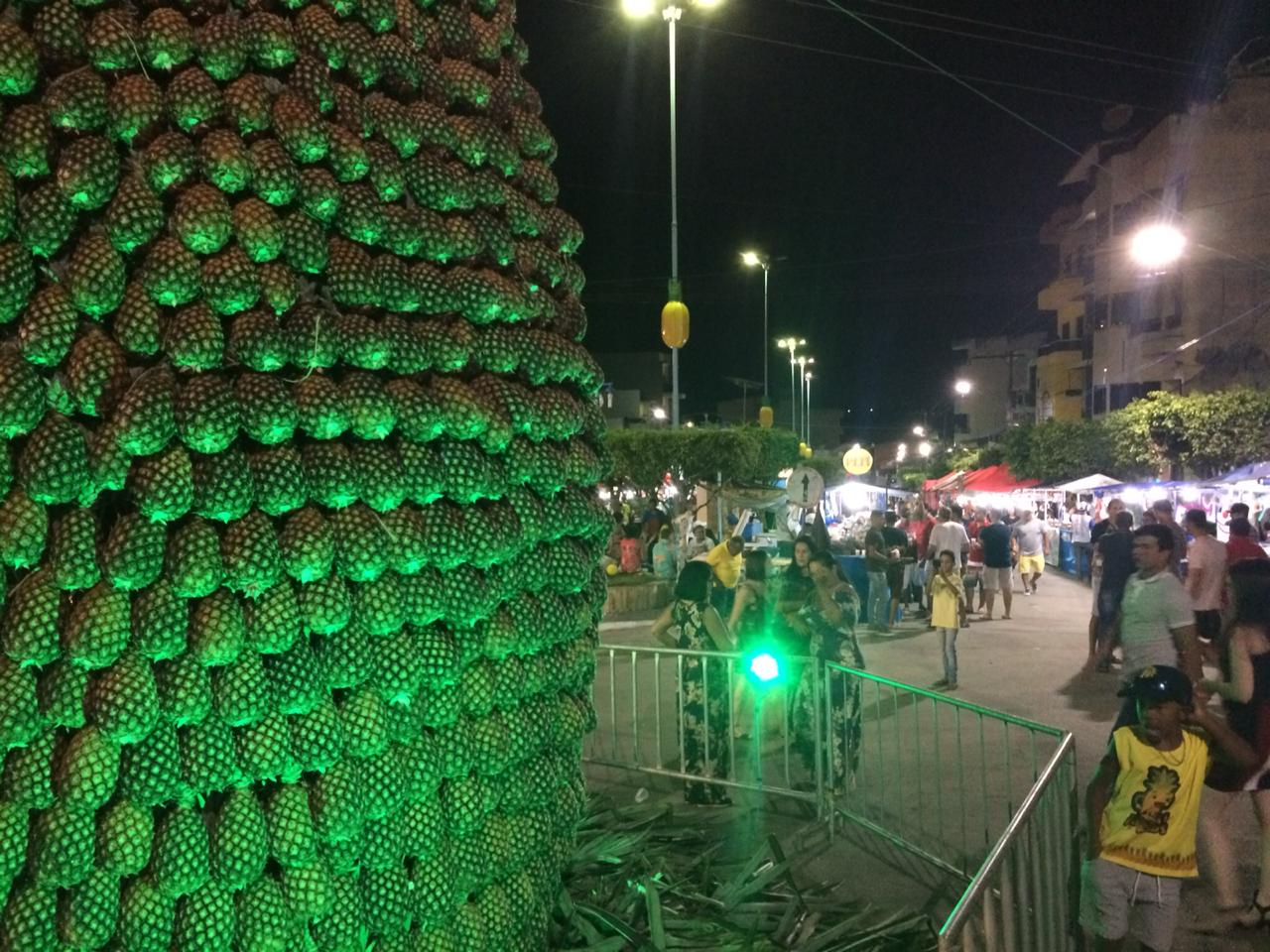 Convidado a subir no camarote da prefeitura, oportunidade em que encontrei outros amigos da “velha São João dos Pombos”, registrei um prefeito animado e entusiasmado com o sucesso do evento. Lá, de maneira rápida, trocamos algumas “figurinhas” sobre a reportagem veiculada, logo cedo, na rede Globo de Televisão realçando os números da produção do principal produto da cidade (abacaxi). Pombos consegue produzir abacaxi o ano todo é já se consolidou com um dos principais polos de produção da fruta no nosso estado. Aliás, transitar por entre as barracas da festa, sem inalar o cheiro doce do abacaxi, foi tarefa impossível, o que reforça o título e o sentimento do encontro festivo.