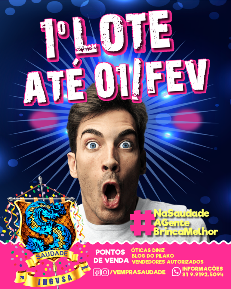 Primeiro lote da Saudade é só até o dia 1º de fevereiro!!! Publicado em 22 de janeiro de 2020 por Cristiano Pilako