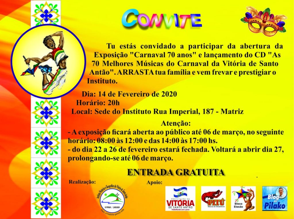 Instituto Histórico – Exposição “Carnaval 70” – dia 14 de fevereiro – entrada gratuita!!